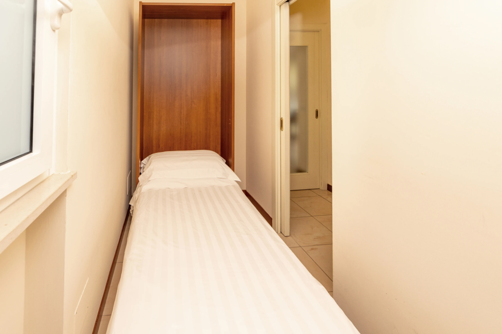 I bilocali “F” e “G” si trovano al piano terra della palazzina di via San Francesco nr.2 e hanno una metratura di circa 42 mq.                   L’accesso indipendente agli appartamenti conduce alla cucina-soggiorno dotata di divano letto a una piazza; sono presenti una camera matrimoniale, uno stanzino con letto singolo a scomparsa ed un bagno con doccia. Il bilocale “G” si affaccia su ampio cortile/giardino privato, mentre il bilocale “F” è dotato di due balconi.